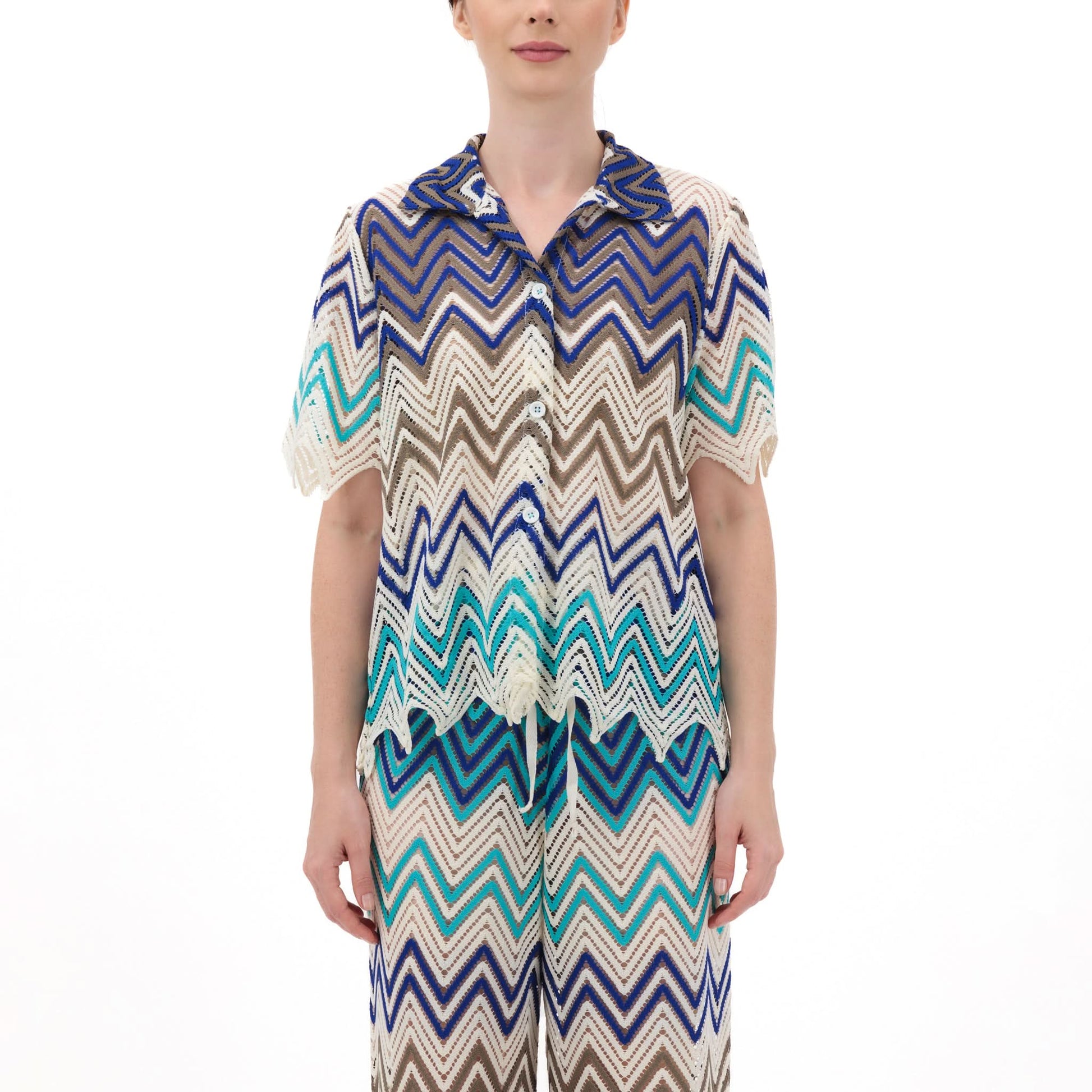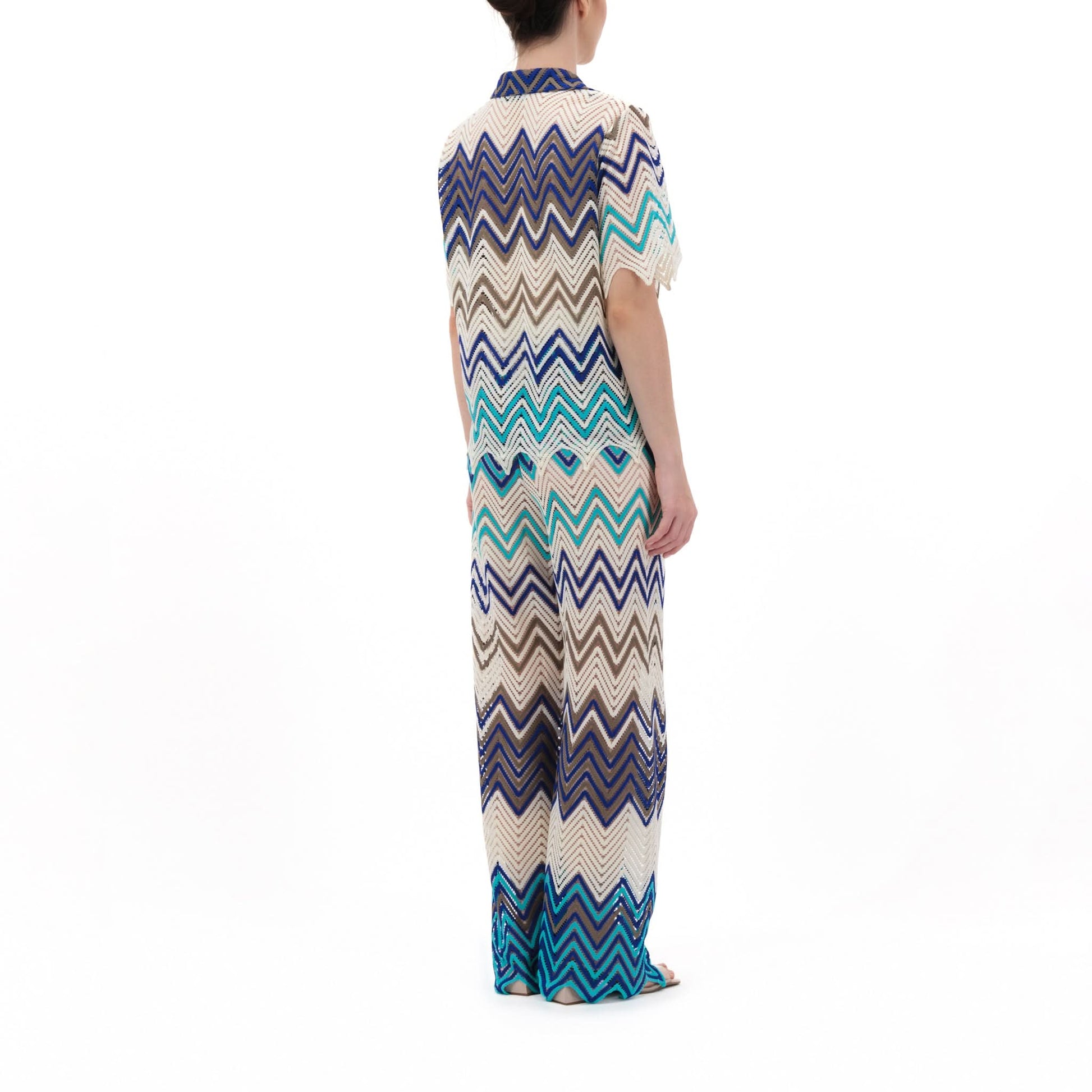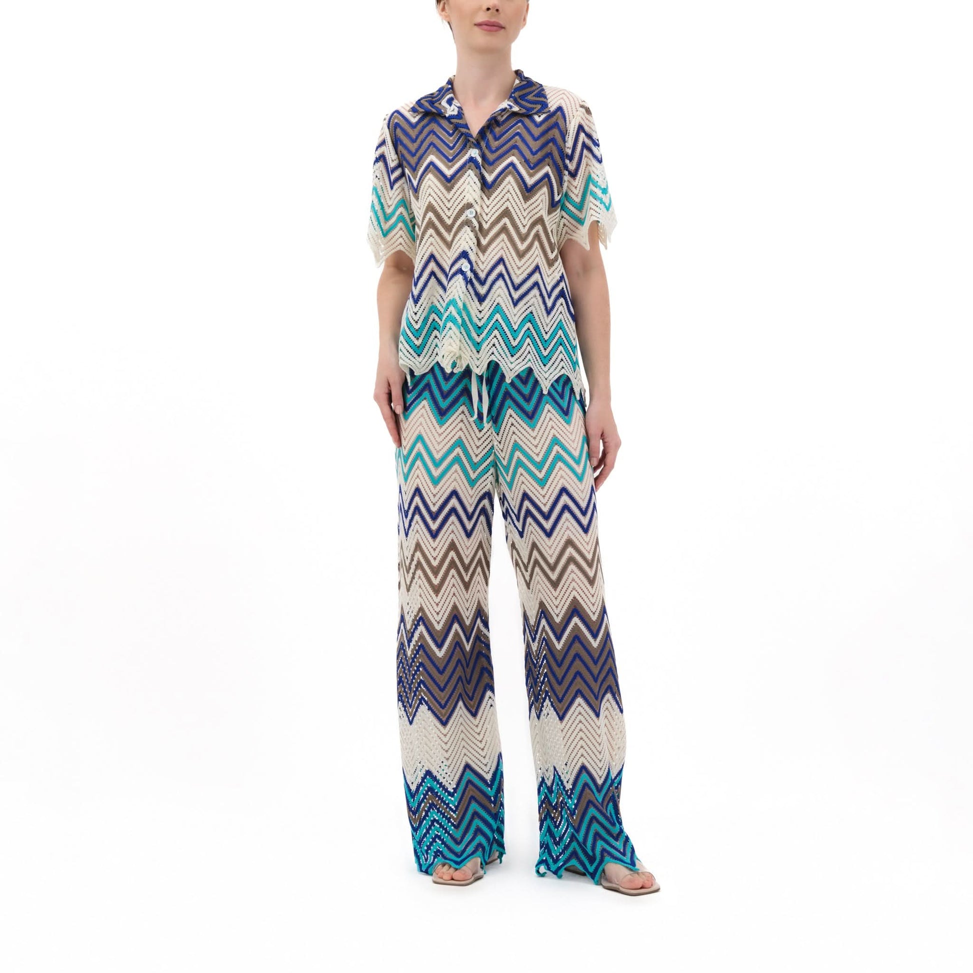 A vibrant set in chevron pattern, crafted from premium breathable hand knitted fabric to ensure comfort.